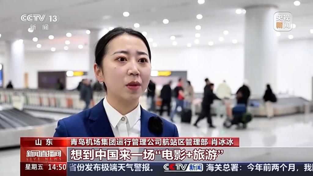 青岛机场集团运转科罚公司航站区科罚部 肖冰冰:越来越多的外籍搭客念念到中国来一场“电影+旅游”,咱们也鼎新职业举措,制定了中、英、日、韩四国言语编制的“搭客指南”,实质涵盖航班经由、交通、交易及极度搭客职业等,更好地相接这波入境上涨。
