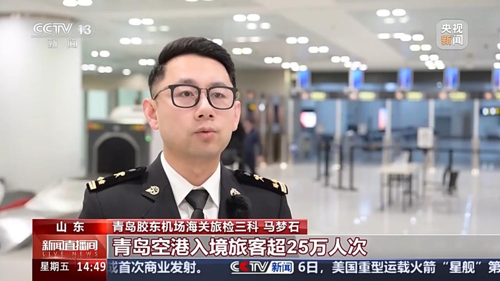青岛胶东机场海关旅检三科 马梦石:本年前两个月,青岛空港入境搭客超25万东说念主次,同比增长27%,入境外籍搭客超7万东说念主次,同比增长50%。
